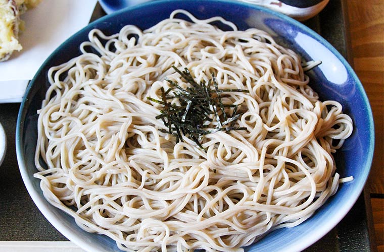 同店のそばは、季節ごとに状態を見極めて厳選したそば粉を使用。長年信頼関係を築いてきた製粉業者に依頼し、香りや風味を最大限に引き出す挽(ひ)き方にもこだわっています。そばの香りを楽しめるようさまざまな挽き方のそば粉の配合を変えることで、香り高くかつ喉ごしのよい馴染みのある味わいに仕上がるのだとか。
