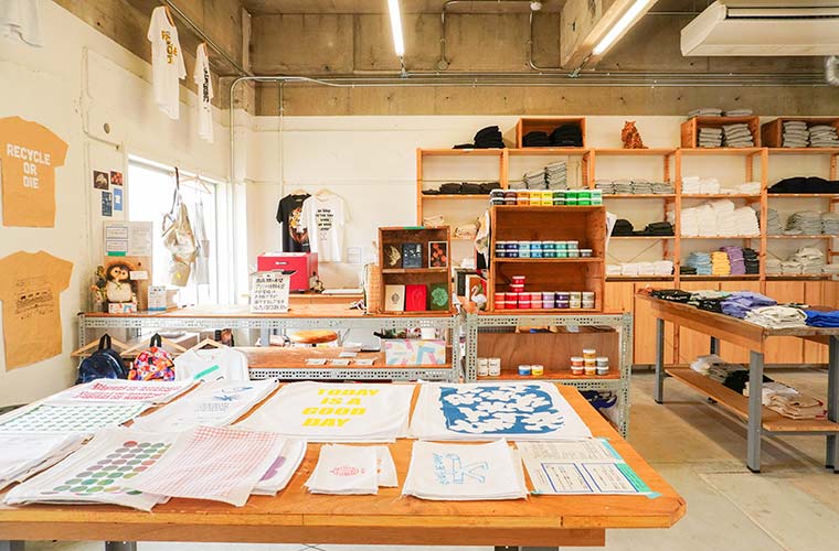 1階には、ものづくりの楽しさを体感できるワークショップスペースもあります。無地のTシャツや端切れから作られたポーチなどの雑貨に、オリジナルデザインのスクリーンプリントを施すことができます。しかも完成後はドライヤーで数分乾かせば、そのまま持ち帰りOK!旅の思い出を“カタチ”にして持ち帰れる手軽さも魅力です。