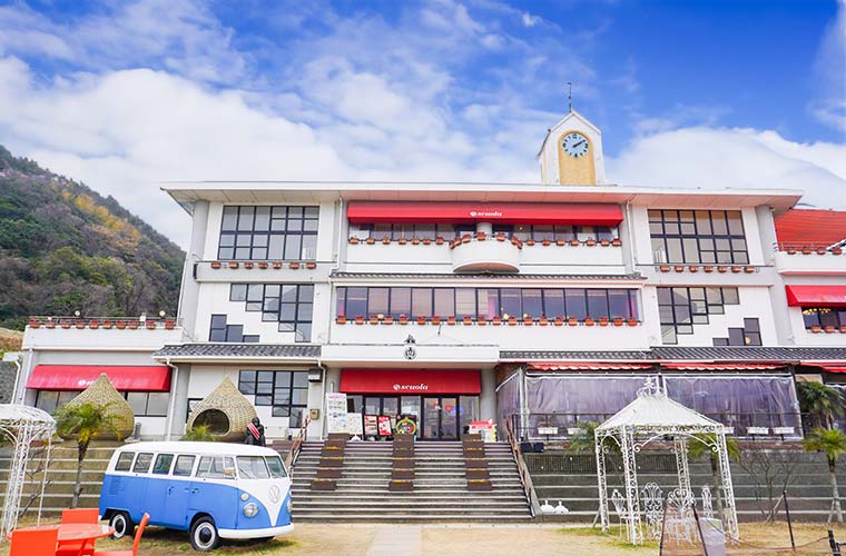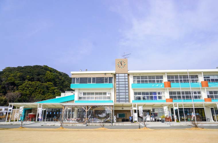 2010年に閉校した「旧淡路市立野島小学校」をリノベーションして生まれた「のじまスコーラ」。場所は神戸淡路鳴門自動車道北淡ICより車でおよそ10分、野島蟇浦(ひきのうら)地区にあります。