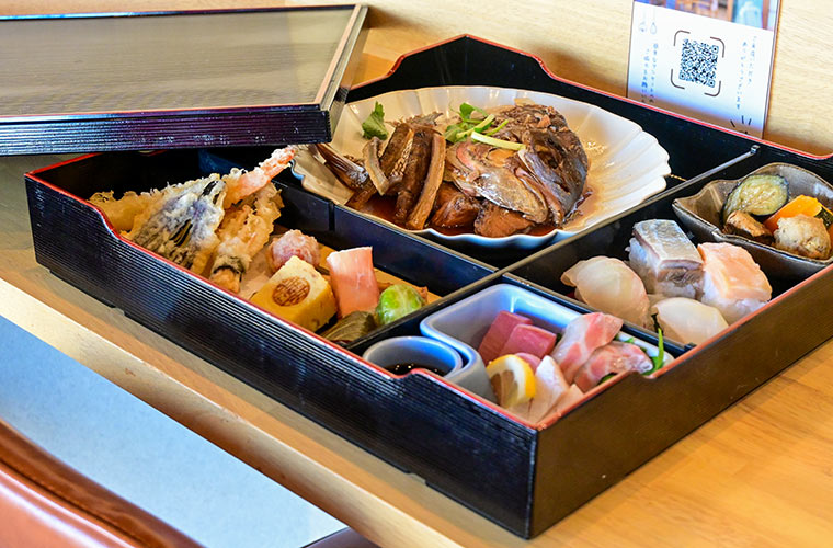 ほかにも握り寿司や箱寿司が入り、一つひとつ丁寧に仕上げられているのが伝わってきます。まるでコース料理を味わうような、贅沢なひとときが楽しめます。