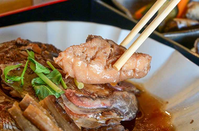 特に印象的なのがタイのあら炊き。煮詰めた後に寝かせることで味を落ち着かせ、身の中までしっかりと味が染み込んだ上品な甘さが広がります。カマやほほなど、部位ごとの味わいの違いを楽しんで。