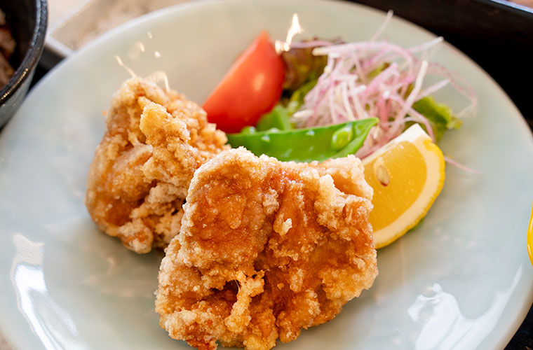 メインや内容は季節によって変わり、訪れるたびに新しい味に出合えるのも魅力。取材時は、しっかりと下味が染み込み、外はサクッと軽やかな「唐揚げ」が登場。思わず次の一口へと箸が進みます。