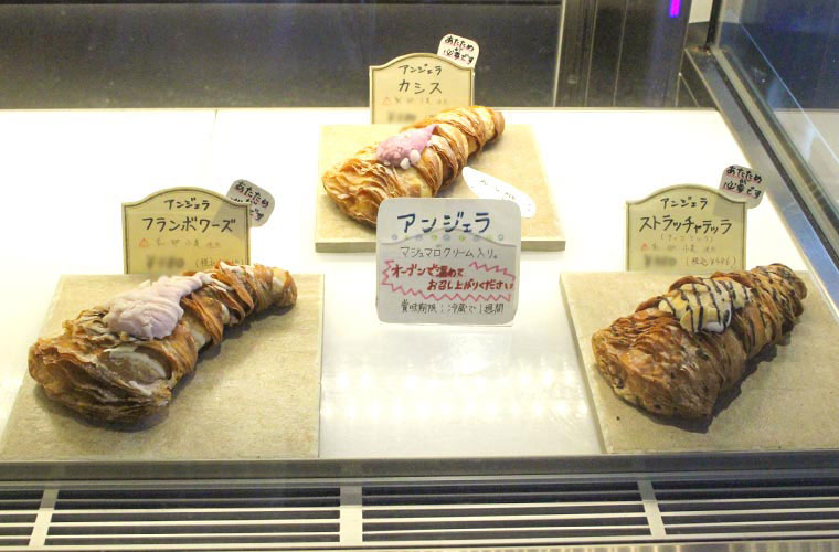 看板メニューは『アラゴスタ』で、クレーマ(カスタード)・キャラメル・ジャンドゥーヤ・マロン・季節限定の5種類あります。『アラゴスタ』とは、エビのしっぽのようなユニークな形をした“タッピ”というパイ生地に、カスタードを入れたナポリの伝統菓子のこと。タッピの味の決め手となる小麦粉は本場イタリア産にこだわり、ナポリから取り寄せしています。材料はシンプルで塩、純正ラードなどを使っていて、塩気のある素朴な味わいが特徴です。