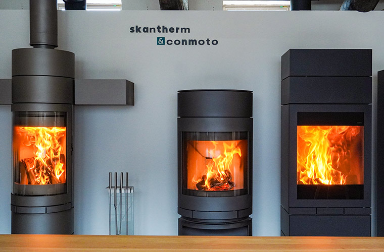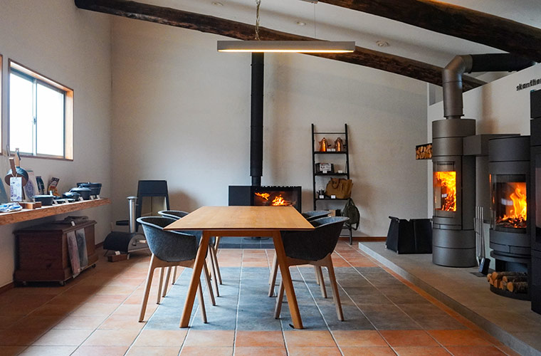 同社では、薪ストーブ業界を代表する世界トップブランド「skantherm(スキャンサーム)」の薪ストーブを取り扱っています。事務所に併設されたショールームでは展示・販売も行っており、実際に薪に火を着けて炎のゆらめきやストーブ自体のデザインの美しさ、そして実際の暖かさを肌で体感することができます。
