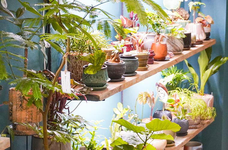 「観葉植物の魅力は、どの子も“世界に一つだけ”ということ。枝ぶりなどで個性が変わってきます」と語る店主。普遍的な美しさも大切にしつつ、自身の感性を大切に選び抜いているため、ほかではなかなか出合えない、ちょっぴり珍しい枝ぶりのものに出合えることも。ぜひ出合いのタイミングとトキメキを大切に、店内をくまなくチェックしてみて。