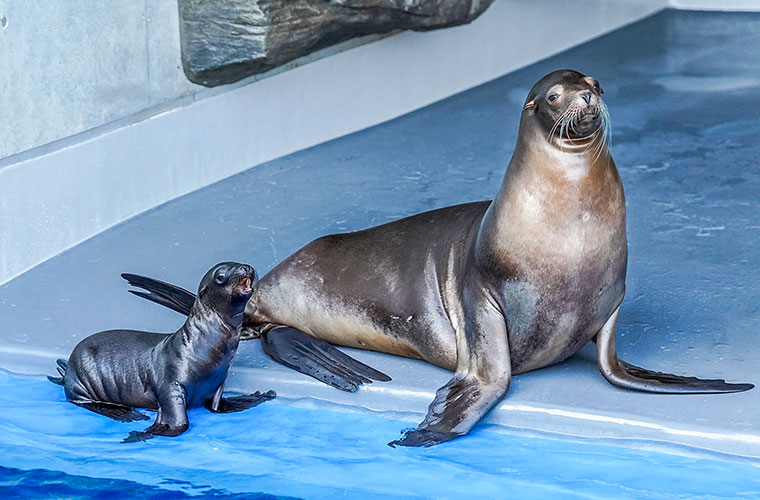さらに、同年6月27日にはカリフォルニアアシカの赤ちゃんも誕生!現在は「ロッキーライフ」で公開していて、母親「チカ」が寄り添い子育てをする様子が観察できます。プールで母親とともに泳ぐ愛らしい姿は癒やされること間違いなし♪