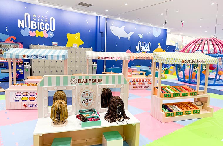 アイスクリーム屋さん、スーパーマーケット、バーガーショップ、花屋さん、美容室と、5種類のごっこ遊びが楽しめる「なりきり遊びコーナー」にも注目を。それぞれのブースには、まるで本物さながらのレジや商品、小物がそろい、親子で店員さんやお客さんになりきって遊べる本格仕様です。