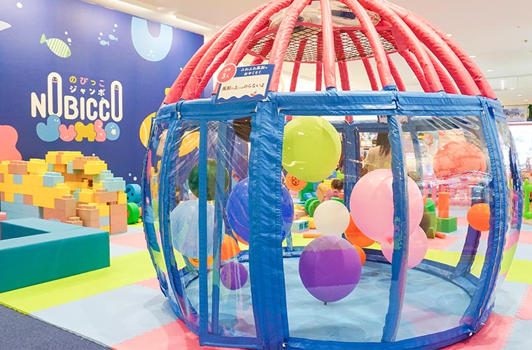 天井に扇風機が仕込まれたドームの中で、動き回るカラフルな風船と遊ぶ「ふわふわ風船」も大人気!ドームの中に一歩入ると、いろんな色の風船がくるくると空中を舞う、エキサイティングな遊び空間が待っています。風船を追いかけたり、手でポンポンと弾ませたりしながら、大はしゃぎする子どもたちの楽しそうな姿に、見守っているママやパパも思わず一緒になってはしゃぎたくなるかも!?