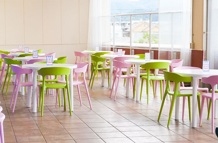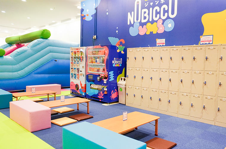 「飲食スペース」では、ちょっとした水分補給はもちろん、隣のフードコートで購入した食事や、自宅から持参したお弁当なども自由に持ち込み可能なことが、一日滞在型を掲げる「のびっこジャンボ」の魅力の一つです。子どもが遊び疲れてぐずってしまったときは、お気に入りのお菓子を食べながら一休みも◎。