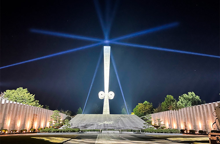 戦後75年の2020年から、毎年10月に平和への思いを込めてライトアップされており、2026年も10月に実施予定です。