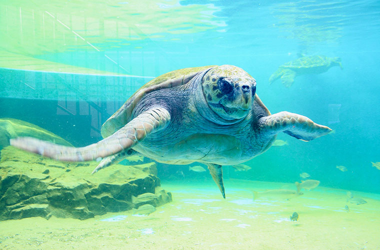 また、飼育員によるペンギンやウミガメ、リクガメ、ヌートリアのお食事タイムを毎日開催。生きものたちの生態についての解説もあり、体験しながら学べるのも魅力です。