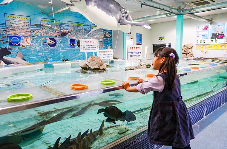 屋外展示やタッチプールもあり、小さな子どもから大人まで楽しめるのが魅力。実はこのタッチプールは、1980年に日本で初めて設置されたことでも知られています。ヒトデやウニなどの海の生きものに直接触れられる体験は、子どもたちに大人気!