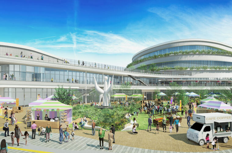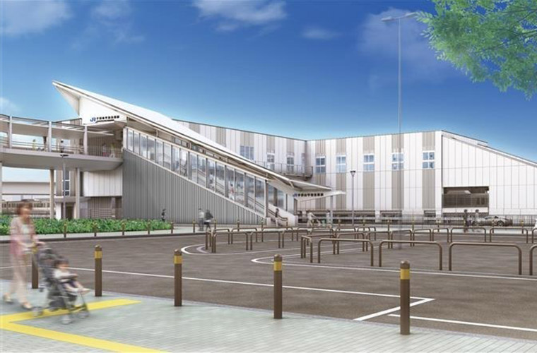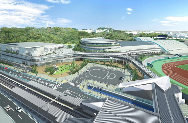 2026年3月14日には、最寄り駅となる「JR手柄山平和公園駅」が新たに開業します。駅は「生まれ変わる公園の新たな玄関口」をコンセプトに掲げ、手柄山平和公園とともに周辺地域の活性化を目指します。地域の人々だけでなく、多くの来訪者に末永く親しまれ愛される駅をめざし、階段部分から一直線に延びる膜素材の屋根によって、スピード感と爽快感あふれるデザインとなっています。