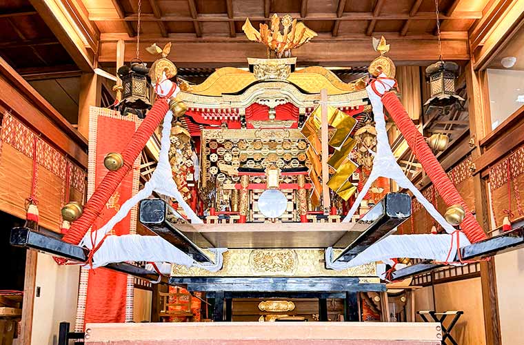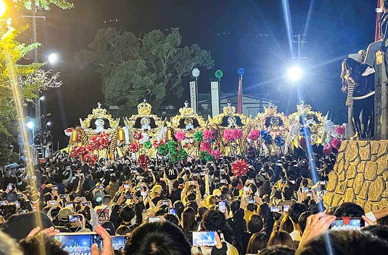 10月18日(土)の「昼宮祭」では、姫路市内で現存最古といわれる3基の神輿が繰り出し、御旅所の城跡公園で屋台練りや獅子舞を披露します。勇壮華麗な15町の屋台練りは圧巻です。➡︎「英賀神社秋季例大祭」の詳細はこちら