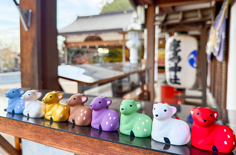 神の使いであるシカをかたどったカラフルなおみくじも勢ぞろい。全8色あり、色ごとに病気平癒や開運厄除け、必勝祈願、健康長寿、一願成就などの願いが込められています。好きな色のシカを選ぶか、かなえたい願いのシカを選ぶかはあなた次第!友だちや家族に願いを込めて選んだシカを贈ると喜ばれそうですね。全色そろえて飾ると全ての願いが叶うかも?