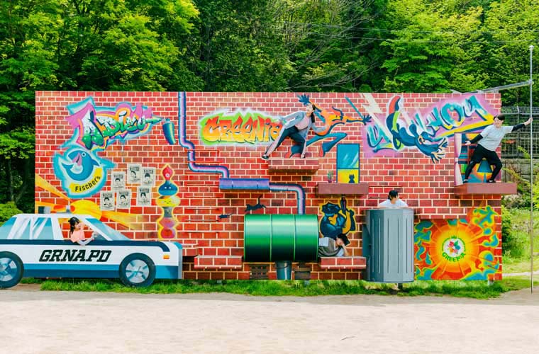 「GREENIA」のコンセプトは「山、空、水辺。すべてが舞台の冒険王国」。場内は「Mt. Kingdom(マウントキングダム)」「yahhoy(ヤッホイ)」「de kairiki(デカイリキ)」「wonder yamambo(ワンダーヤマンボー)」「wonder amembo(ワンダーアメンボー)」「mecya forest(メチャフォレスト)」「zip slide(ジップスライド)」「mt.king(マウントキング)」の、8つのエリアに分かれていて、「陸上」「筋力系」「水上」「空中」のアスレチックが203ポイントも用意されています。その内の80ポイントのアスレチックを、人気動画クリエイター「フィッシャーズ」が監修しています。