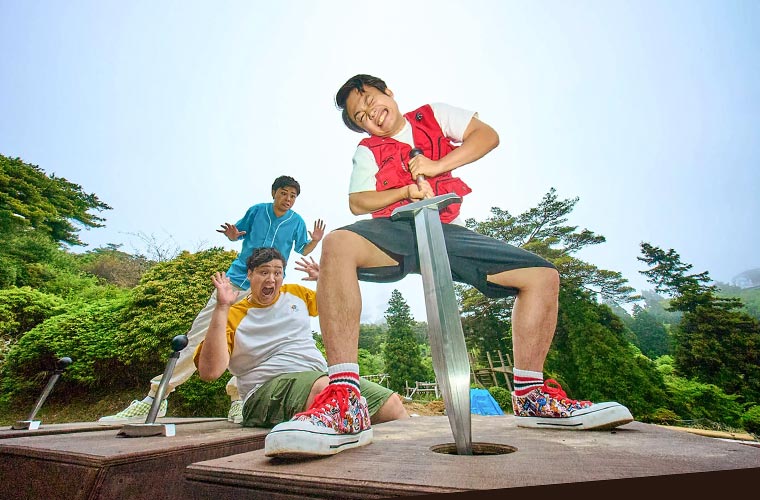 最初に待ち受ける難易度が高めの「引き抜け!王国の剣」。それぞれ異なる重さを持つ剣の中から選んで、引き抜く力試しができますよ。
