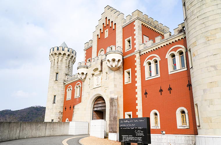 山頂に到着し、ゆるやかな坂道を登っていくと、視界の先に悠然とそびえ立つお城の入り口が見えてきます。堂々たる佇まいは、まるで本物のヨーロッパの古城を訪れたかのよう。