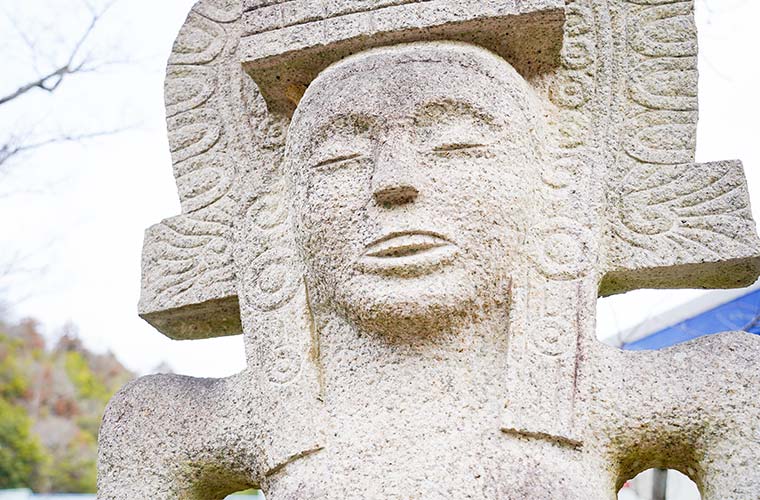 中には思わずこちらまで笑顔になってしまいそうな、ユニークな表情も。世界各地の神様や石像が並び、それぞれが異なる物語や文化を今に伝えています。表情やポーズの違いを見比べて、楽しみながら歩いてみて♪