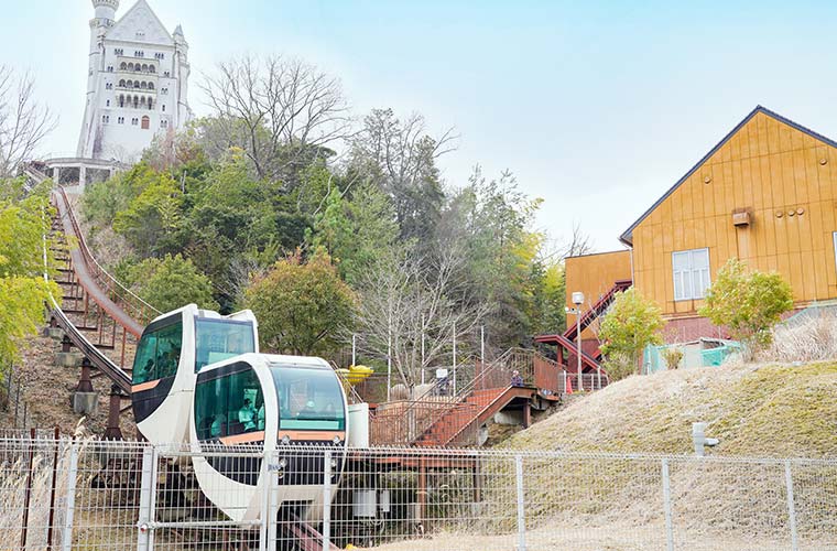 「城のエリア」へは、モノレールに乗って山頂の城を目指します。運行本数が限られているため、事前に時刻表をチェックしてから、いざ出発!➡︎時刻表はこちら(PDF)