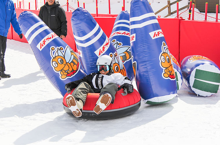 雪の上をボートに乗って走り抜けるスリリングな「スノーラフティング」や、空気でふくらんだ大きなふわふわ遊具、浮き輪型のスノーチューブに乗ってクルクル回転する「雪のメリーゴーランド」、「雪のおままごとハウス」など、小さい子どもも全力で遊べるアクティビティが満載!