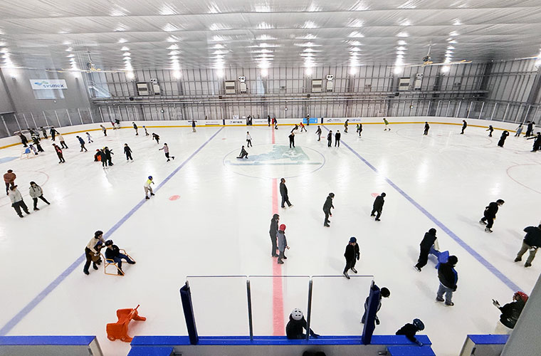 全長60mの広々としたリンクは、初心者や子ども連れのファミリーにも安心。このリンクは国際規格で作られているため、一般の人だけでなく、世界で活躍するフィギュアスケート選手やアイスホッケーチームの練習場としても利用されているんだとか。
